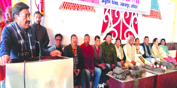 हरिद्वार, 27 दिसंबर (हि.स.)। उपनगरी ज्वालापुर स्थित एक बैंकेट हॉल में आयोजित अटल स्मृति वर्ष विधानसभा सम्मेलन में भारतीय जनता पार्टी के प्रदेश उपाध्यक्ष एवं हरिद्वार जिला प्रभारी अनिल गोयल ने भारत रत्न अटल बिहारी वाजपेयी की जन्म शताब्दी पर उन्हें श्रद्धांजलि अर्पित करते हुए कहा कि अटल जी के जीवन की प्रेरणा हमें हमेशा आगे बढ़ने में सहायता करती है। उन्होंने भारतीय राजनीति में एक नई सोच और दिशा प्रदान की, जो सदैव हमारे मार्गदर्शन का स्रोत रहेगी।