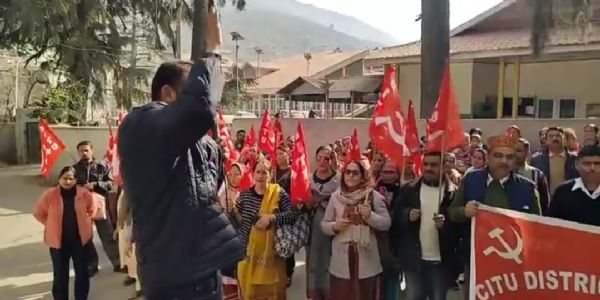चार श्रम संहिताओं के विरोध में सीटू का कुल्लू में धरना प्रदर्शन