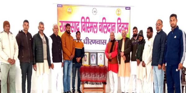 हिसार, 19 दिसंबर (हि.स.)। धीरणवास के गुरुकुल में काकोरी कांड के शहीदों को श्रद्धांजलि अर्पित करने के लिए कार्यक्रम किया गया। यह कार्यक्रम आजाद हिन्द युवा क्लब गांव किरतान एवं धीरणवास गुरुकुल के सहयोग से किया गया। कार्यक्रम में शहीदों के चित्र पर फूल माला अर्पित कर श्रद्धांजलि दी गई। मुख्य वक्ता किरतान से वैदिक प्रवक्ता आचार्य देवदत्त शास्त्री थे। उन्होंने काकोरी कांड में देशभक्तों को दी गई फांसी के बारे में बताया। उन्होंने शुक्रवार काे कहा कि किस प्रकार अंग्रेजी सरकार ने झूठे मुकदमे बनाकर देश के चार वीरों को फांसी दे दी। देश को आजाद करवाने के लिए राम प्रसाद बिस्मिल, अशफाक उल्ला खान, ठाकुर रोशन सिंह और राजेंद्र सिंह लहरी देशभक्तों ने हथियार, गोला बारूद खरीदने के लिए सोचा। धन की आवश्यकता होने पर उन्होंने सोचा जो इस देश का धन अंग्रेज लूटकर इंग्लैंड ले जा रहे हैं क्यों न उसे रोककर देश की स्वतंत्रता के लिए काम करें और अंग्रेजों को देश से बाहर करें। इसका पता चलने पर अंग्रेजों द्वारा रामप्रसाद बिस्मिल, अशफाक उल्ला खान, ठाकुर रोशन सिंह, राजेंद्र सिंह लहरी को फांसी दे दी गई और शेष को सजा दी गई। फांसी पर चढ़ने वाले शहीदों का देश से अंग्रेजों को बाहर करने का सपना अधूरा रह गया।