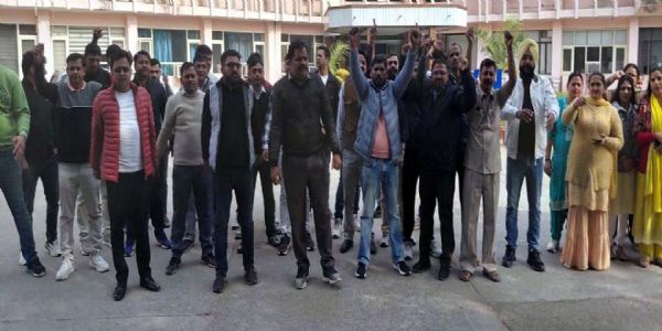 गया। यह प्रदर्शन सरकार की प्रस्तावित ऑनलाइन ट्रांसफर पॉलिसी के विरोध में दो घंटे