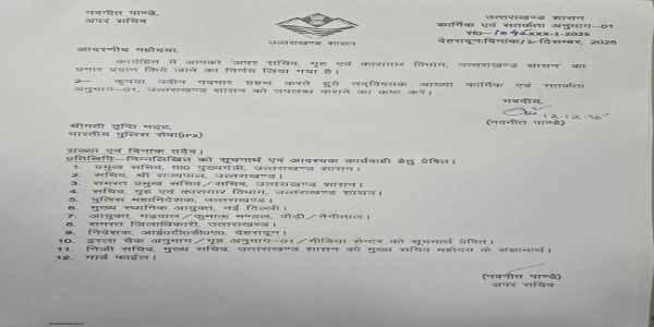 जारी ओदश में कहा गया है कि सभी अधिकारी अपने नवीन पदों पर कार्यभार ग्रहण कर इसकी सूचना पुलिस महानिदेशक, उत्तराखंड को उपलब्ध कराएं।